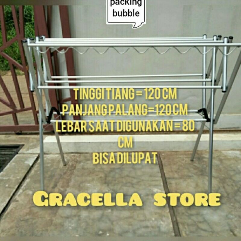 Di musim hujan sering kali kita harus memindahkan jemuran agar tidak basah dan harus mengembalikan jemuran kembali saat ada matahari. Silahkan di order barang ready. (p) 129 cm x (l) 75 cm x (t) 110 cm bahan : Tersedia pula jemuran handuk, gantungan baju (hanger), rak gosok / meja setrika, rak sepatu, dan peralatan rumah tangga lainnya. Pembayaran mudah, pengiriman cepat & bisa cicil 0%.